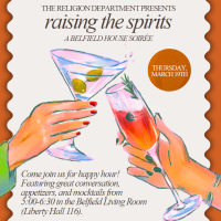 The Religion Department Presents:Raising the SpiritsA Belfield SoireeCome join us for happy hour.Featuring great converstaion, appetizers, and mocktails!