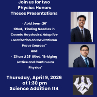 Please join the Physics & Engineering Department for two Physics Honors Theses Presentations!